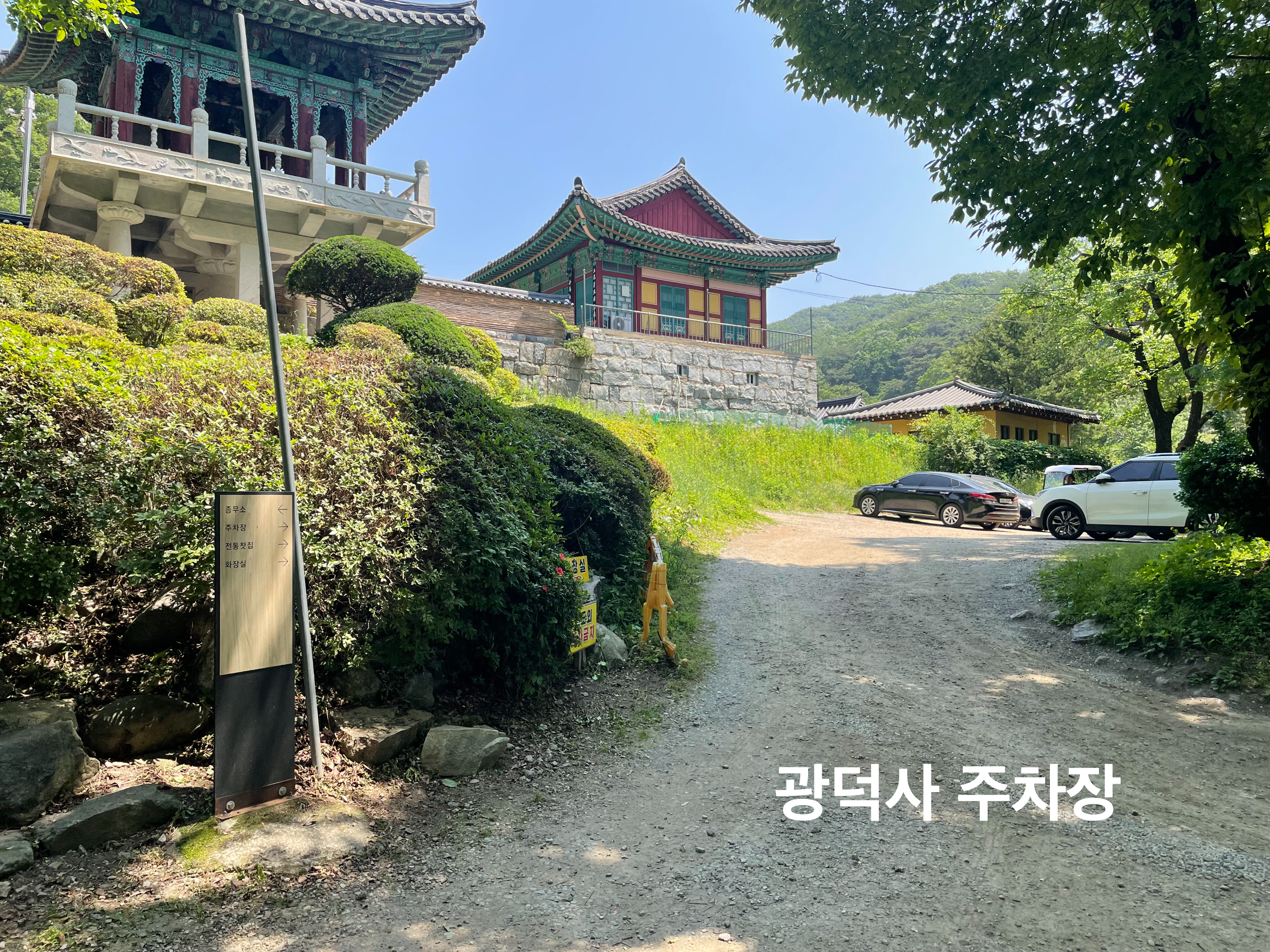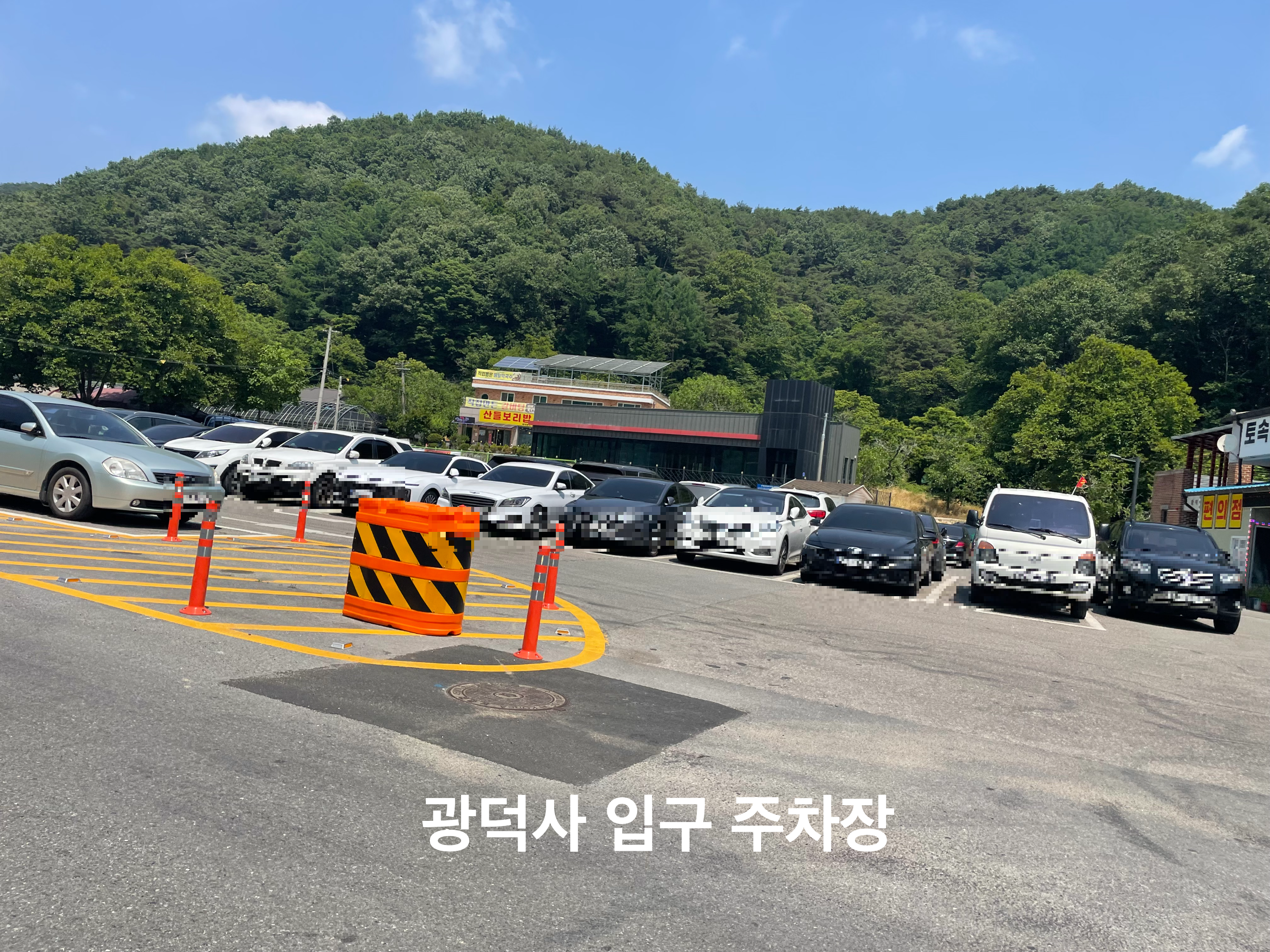 광덕사 입구 근처에 주차장이 있는데 차량이 많아서 주차하기 좀 힘들었어요 그리고 절 근처에 있는 주차장은 신도들을 위한 주차장으로 사용하고 있으니 이용에 참고하세요