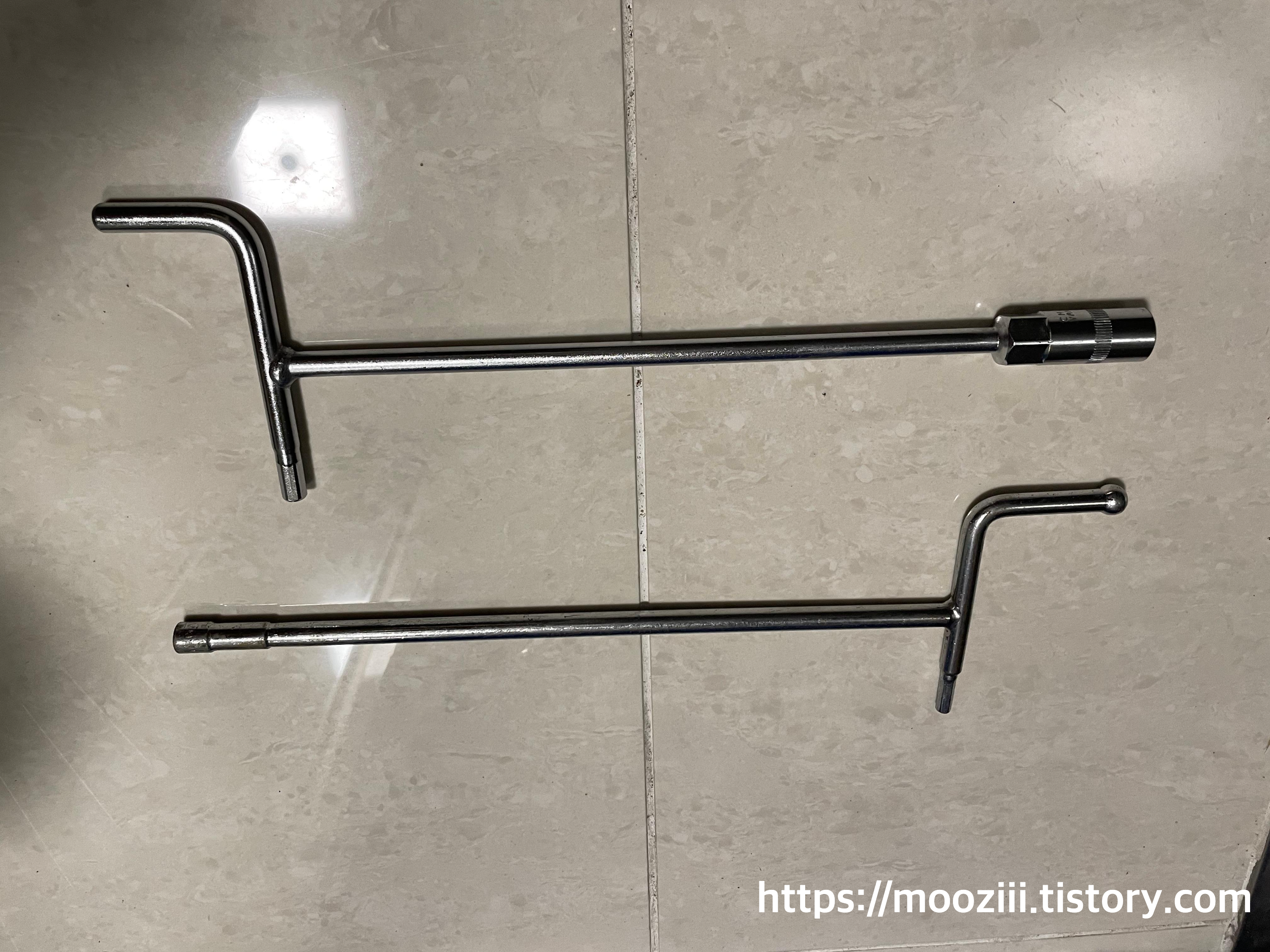 미니 배터리를 교체하려면 공구가 필요한데 배터리 구입 시 선택할 수 있는 무상공구(길이가 긴 육각복스 2개)와 육각복스세트를 준비해 놓아야 해요