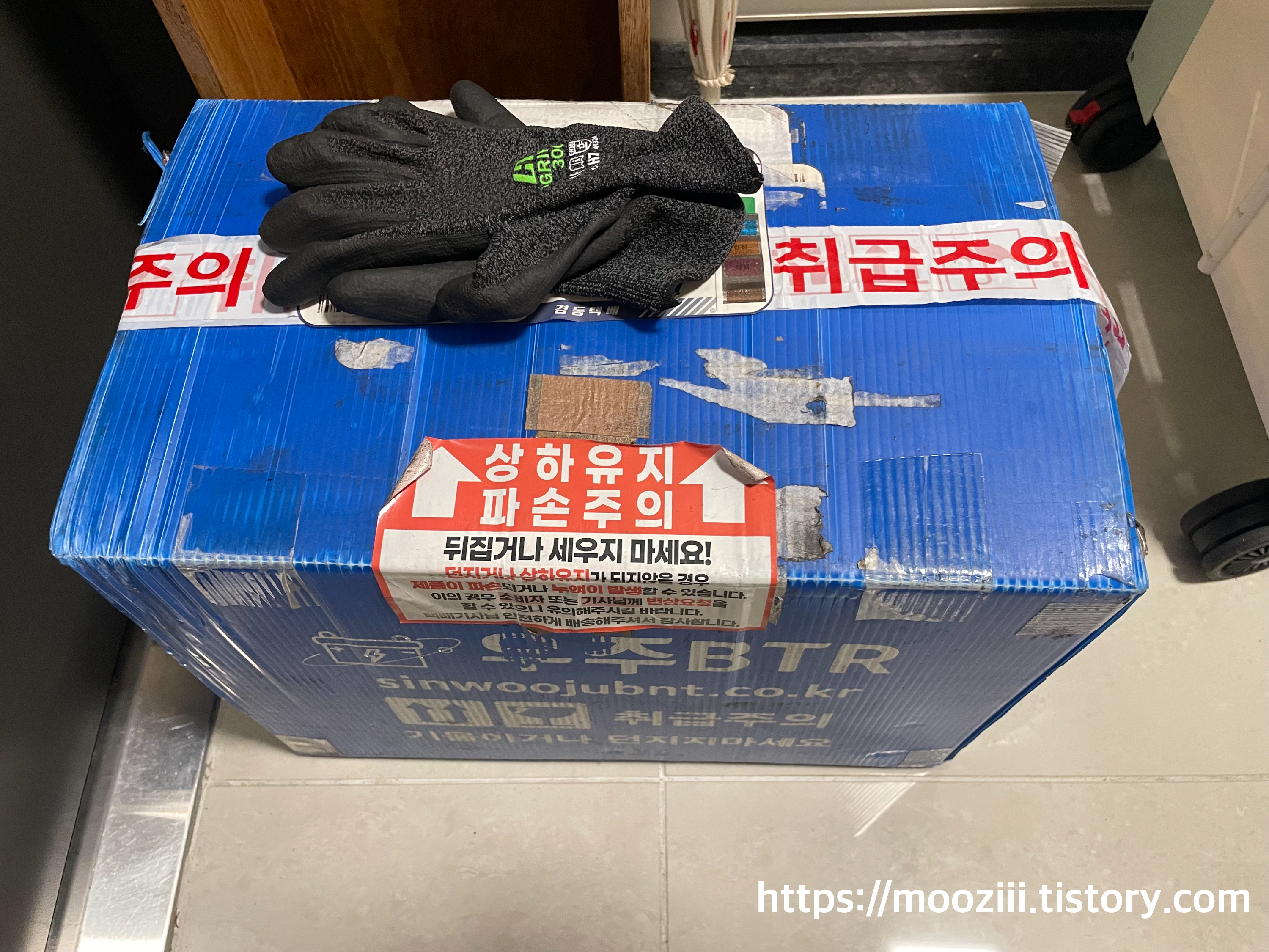 배터리를 주문하면 화물로 운송이 되고 파란 박스에 담겨서 배송이 되는데 배터리와 무상공구가 함께 들어 있어요