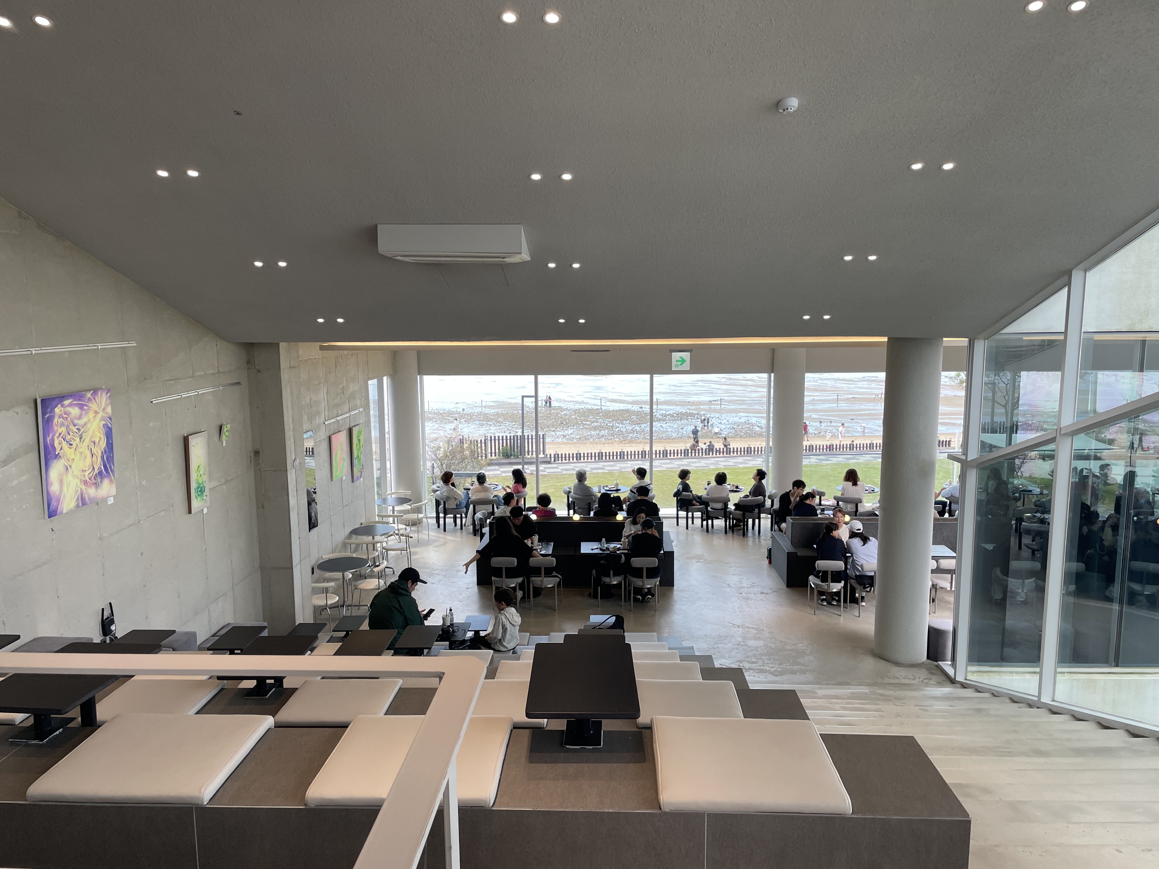 미음 카페는 1층과 2층 그리고 옥탑층으로 구성되어 있는데 층마다 계단식 구조라서 어느 공간에서나 바다뷰를 만끽할 수 있기 때문에 인기가 더 많은 것 같아요