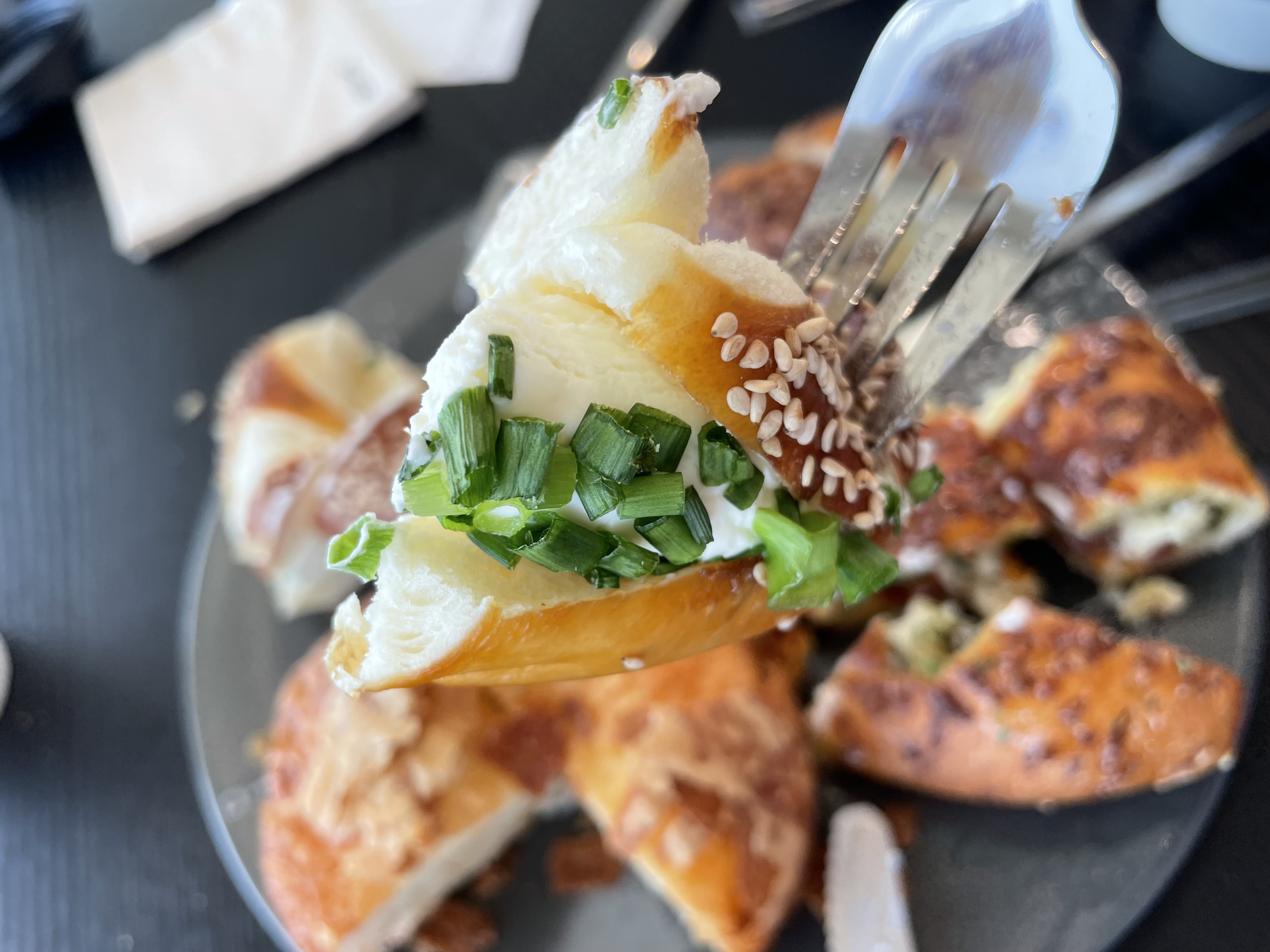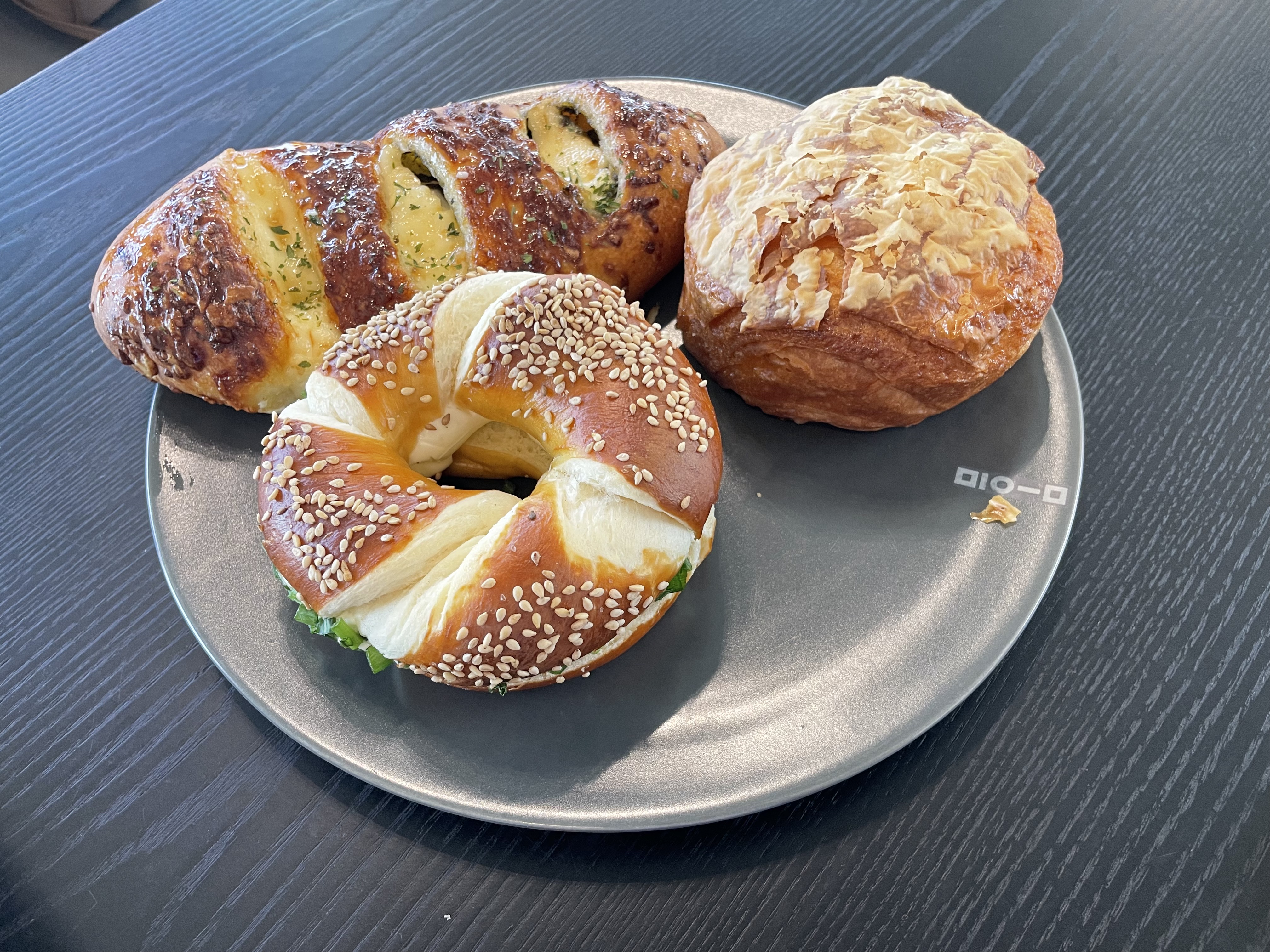 미음 카페 최고 인기 메뉴 대파크림치즈 베이글