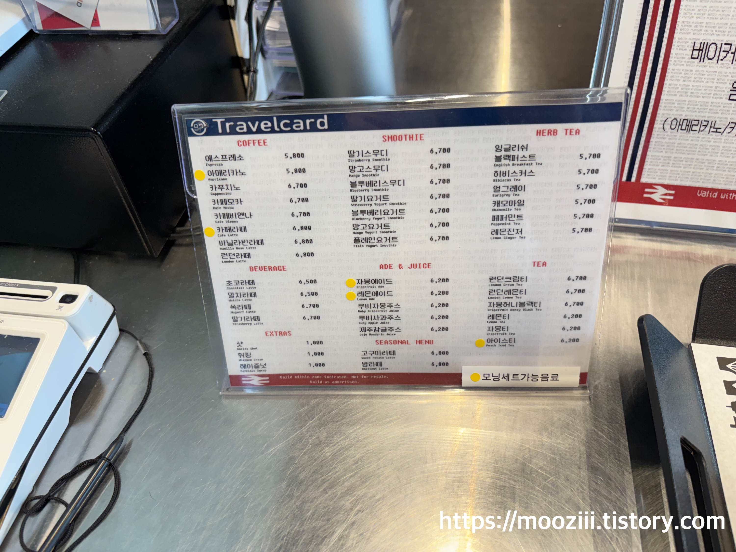 브리티시플랫폼 메뉴판