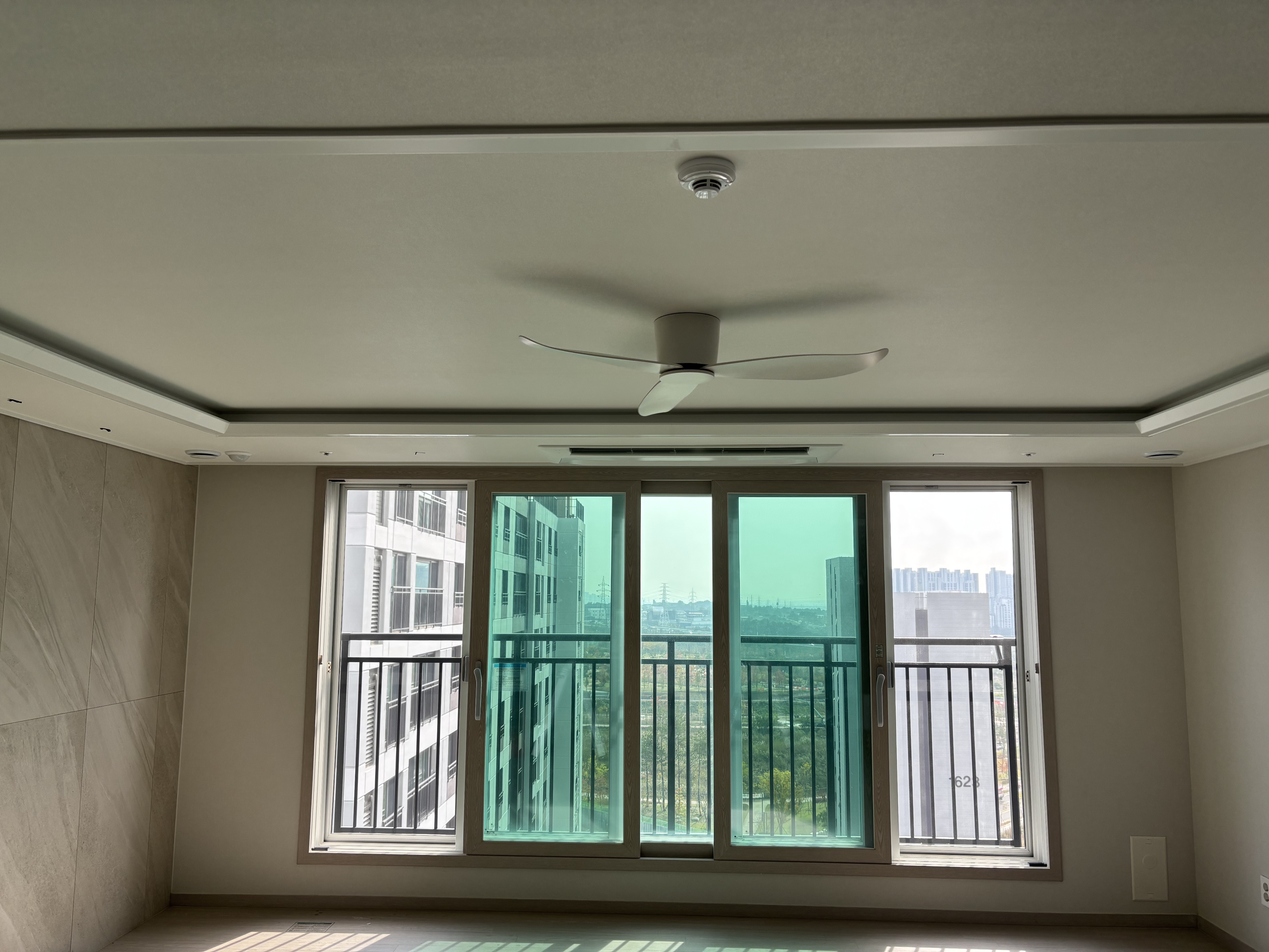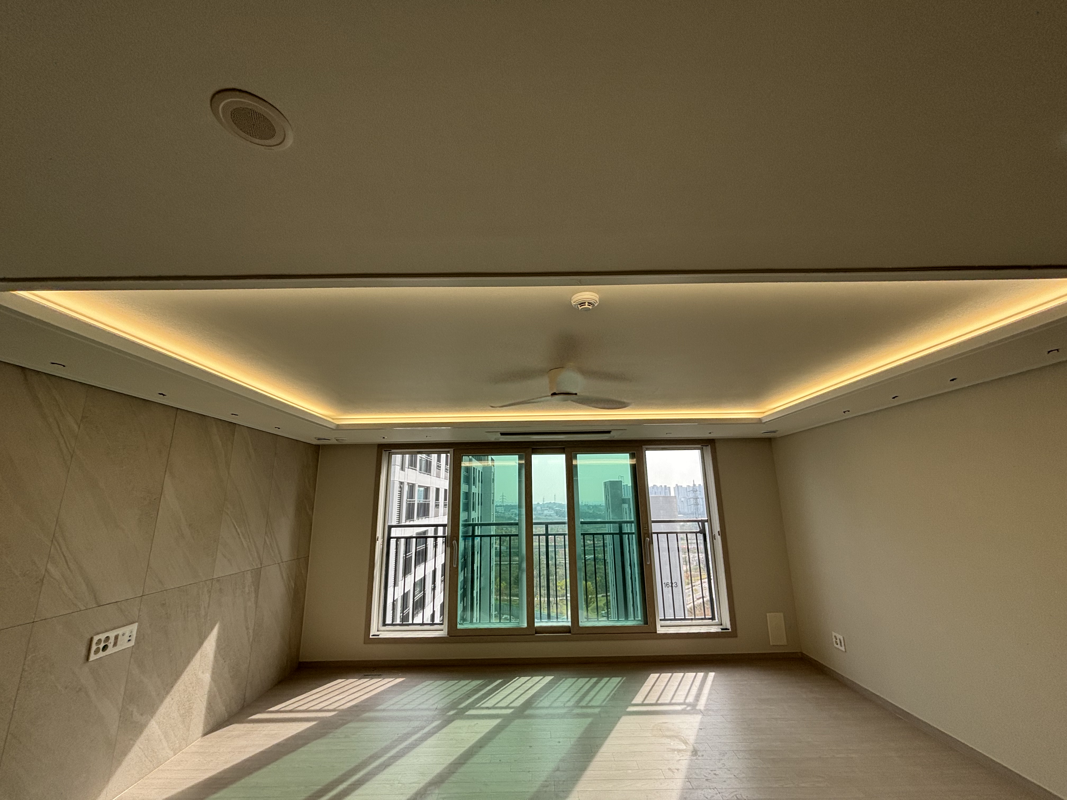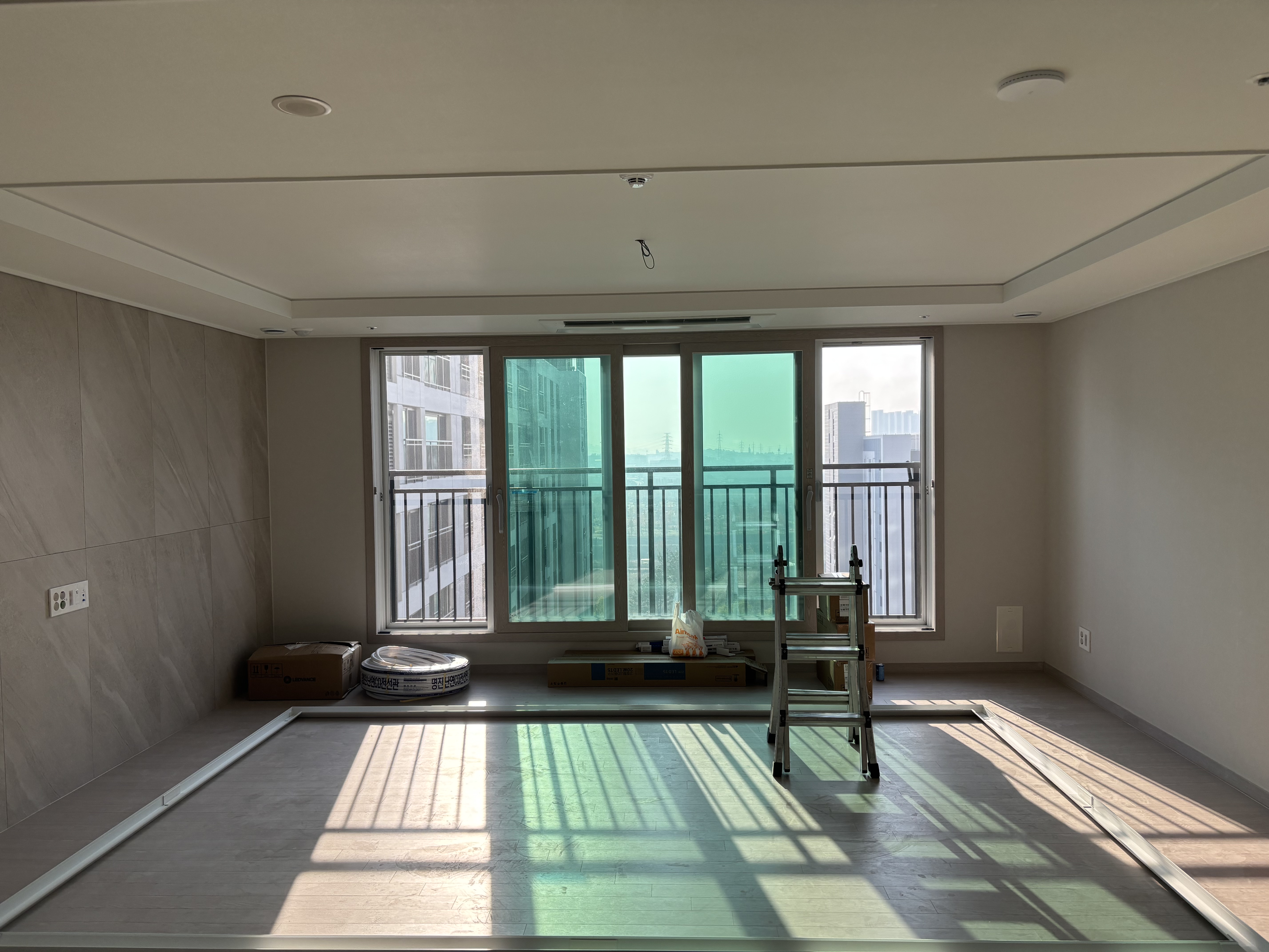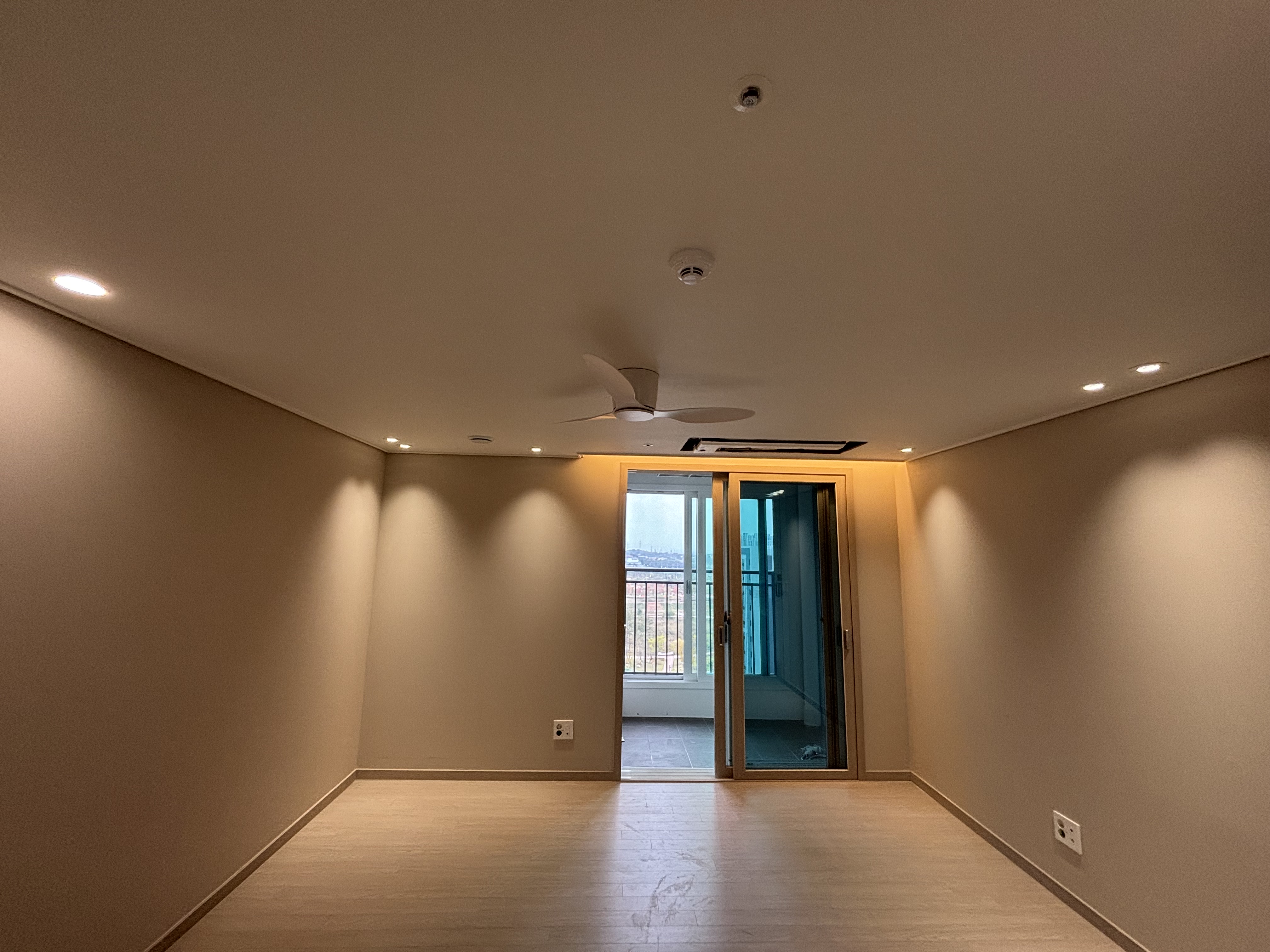 우선 기존에 설치되었던 전등은 모두 철거했고요. 기존에 전등이 설치되었는 부분은 실링팬을 설치할 계획이어서 도배를 했어요 팁을 드리자면, 새 아파트를 입주하는 시기에는 하자를 보수하는 도배팀이 상주하고 있어서 평소보다 저렴한 금액으로 도배를 받을 수 있어요.