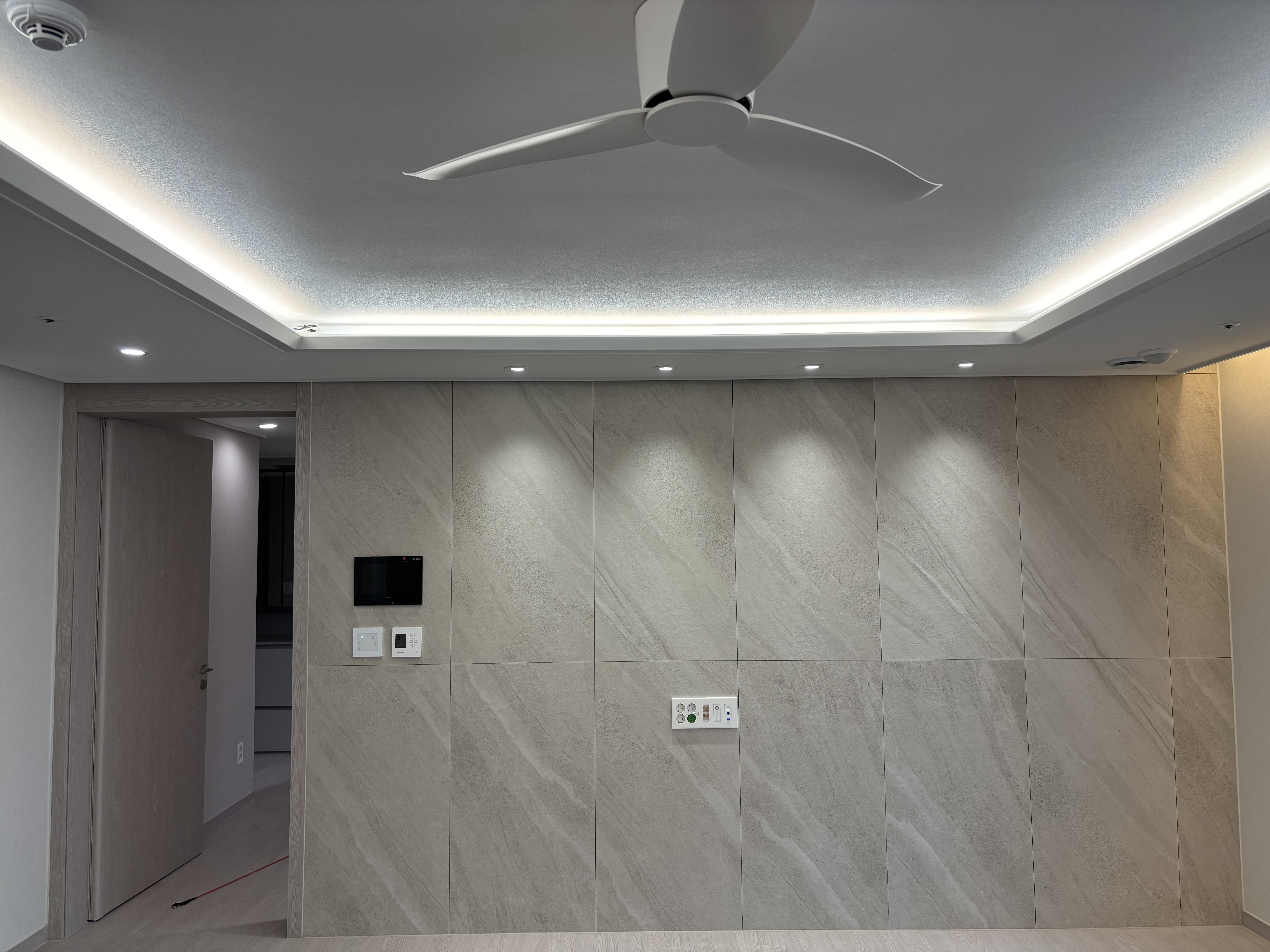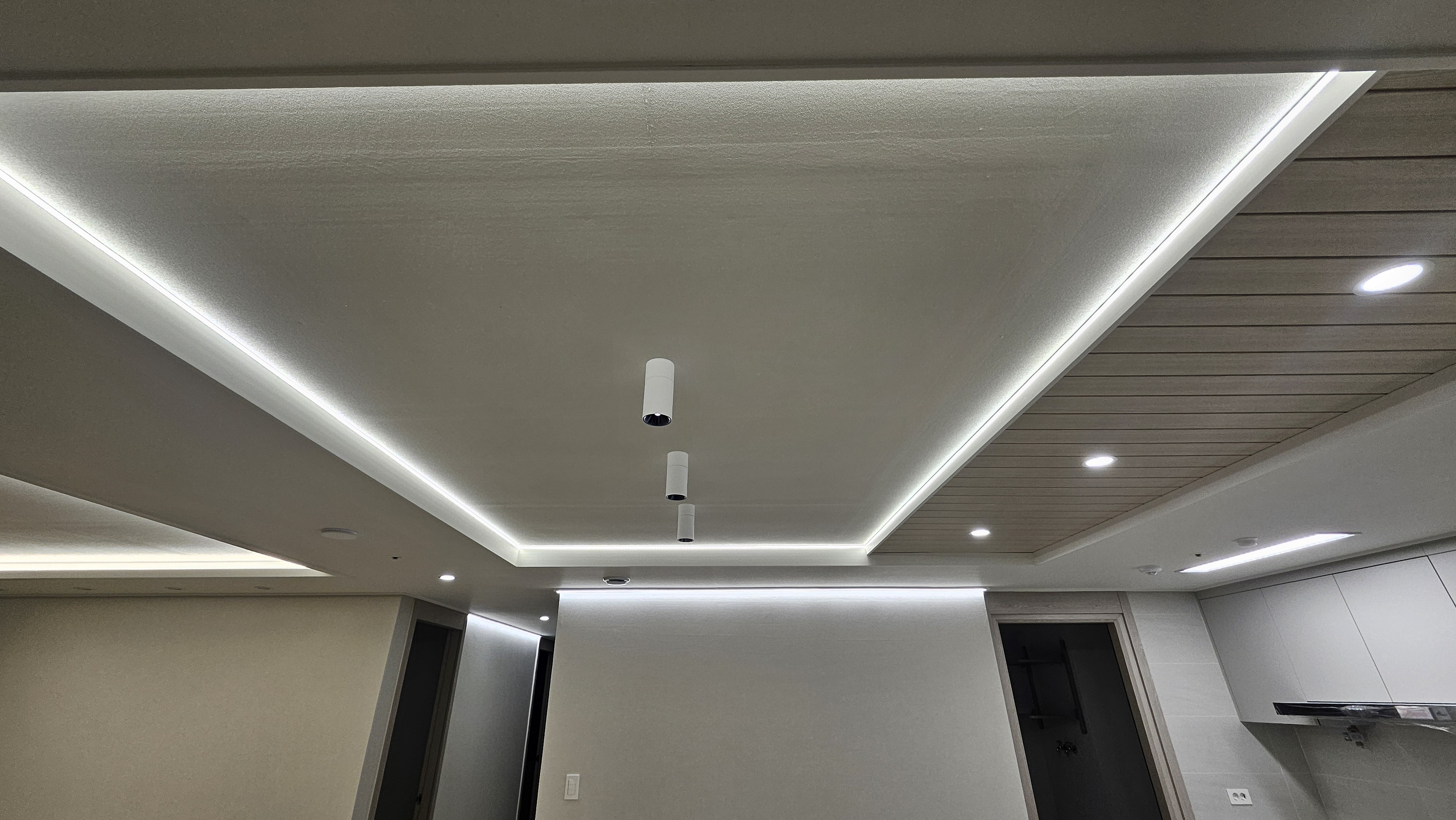 천장 깊이를 살려 은은하게 퍼지는 라인조명을 시공했습니다.