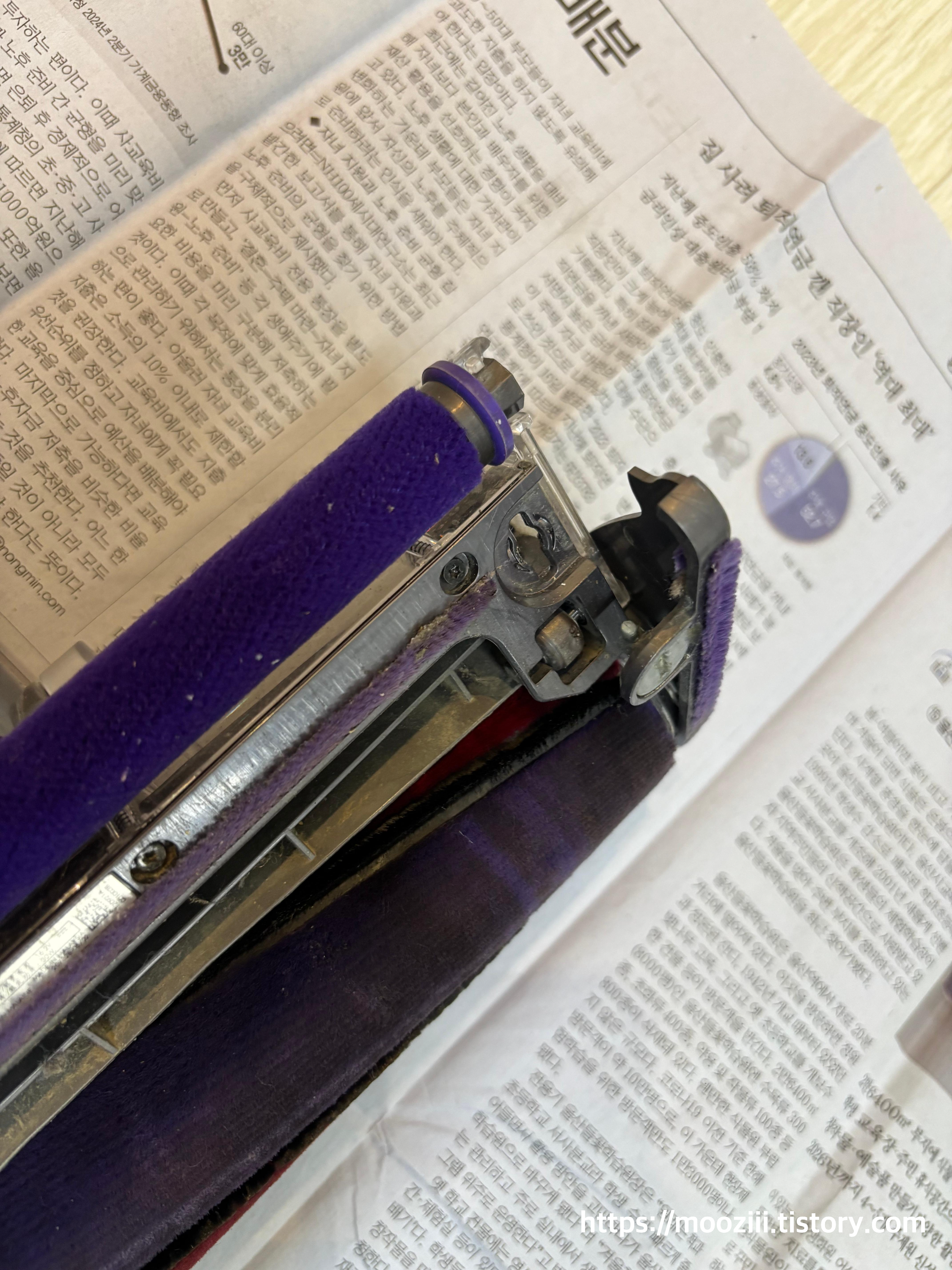 헤드 부분은 바닥에 물기가 있을 때 돌리면 물과 먼지가 헤드(롤러)에 함께 묻어서 쉽게 오염이 될 수 있어요.