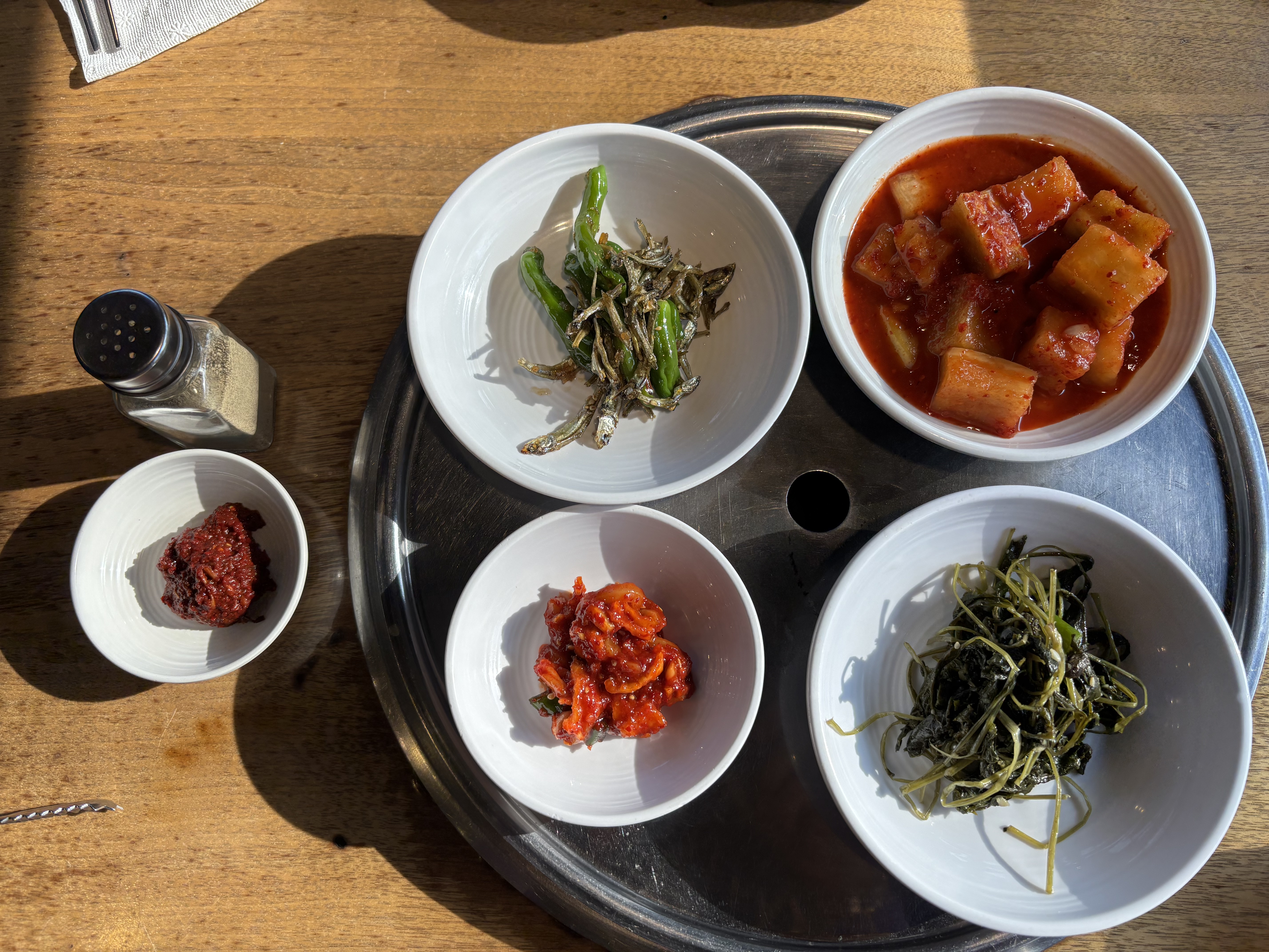 밑반찬은 깍두기 젓갈 멸치볶음 나물 포함 총 4가지
