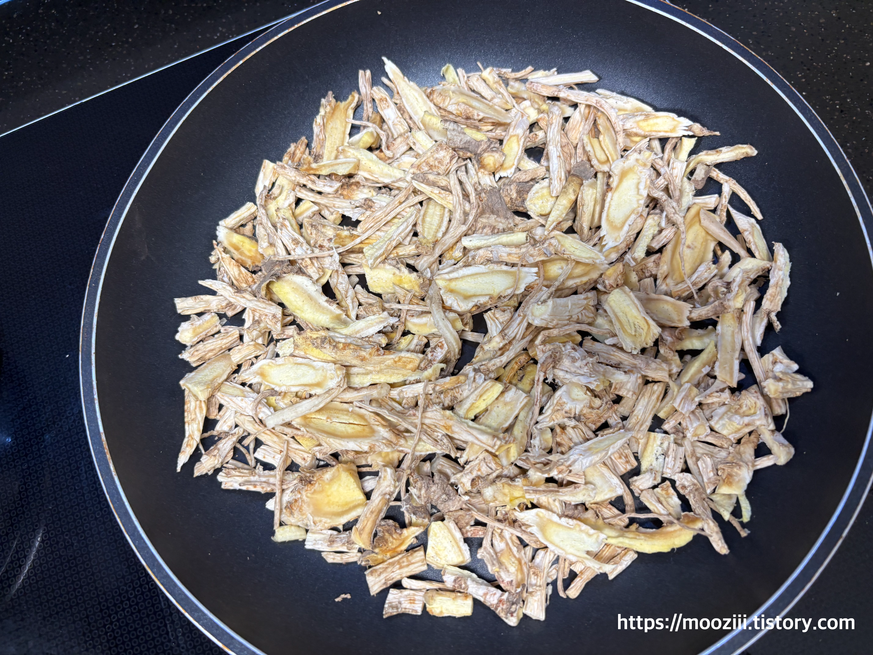이렇게 볶은 도라지는 그대로 보관했다가 차로 끓여 마시거나, 물에 우려 마셔도 좋아요.