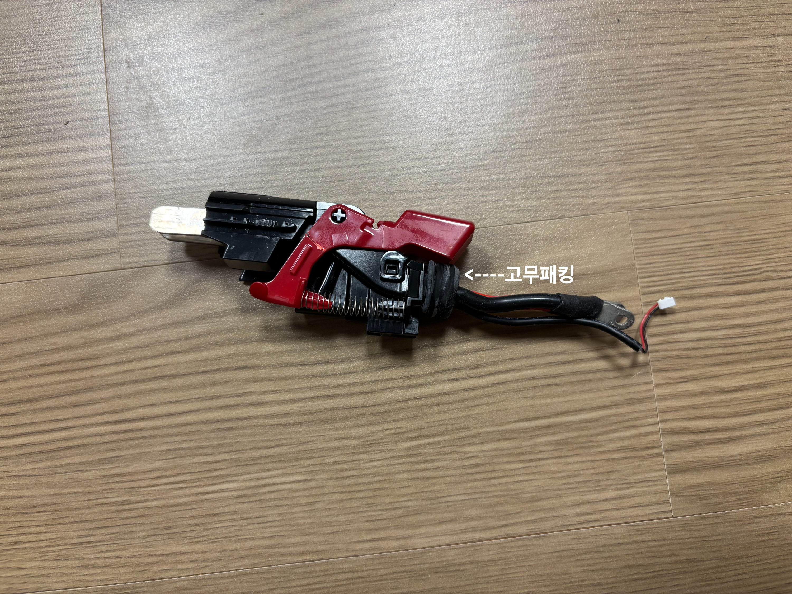 → 트리거 부분을 분리한 사진인데, 케이블 쪽에 고무패킹 있는 부분을 아래쪽으로 꾹 꾹 눌러주면서 빼내야 해요.