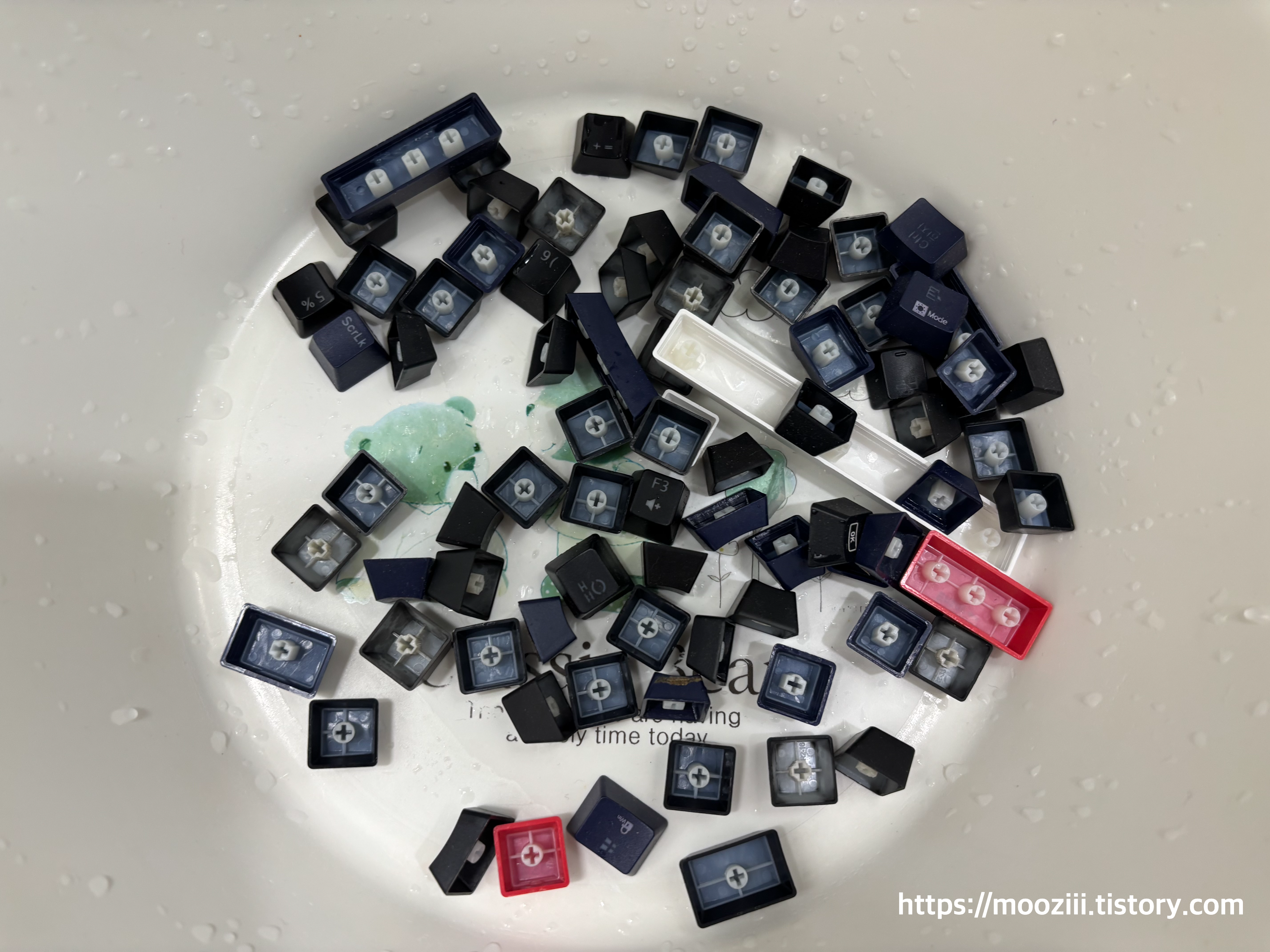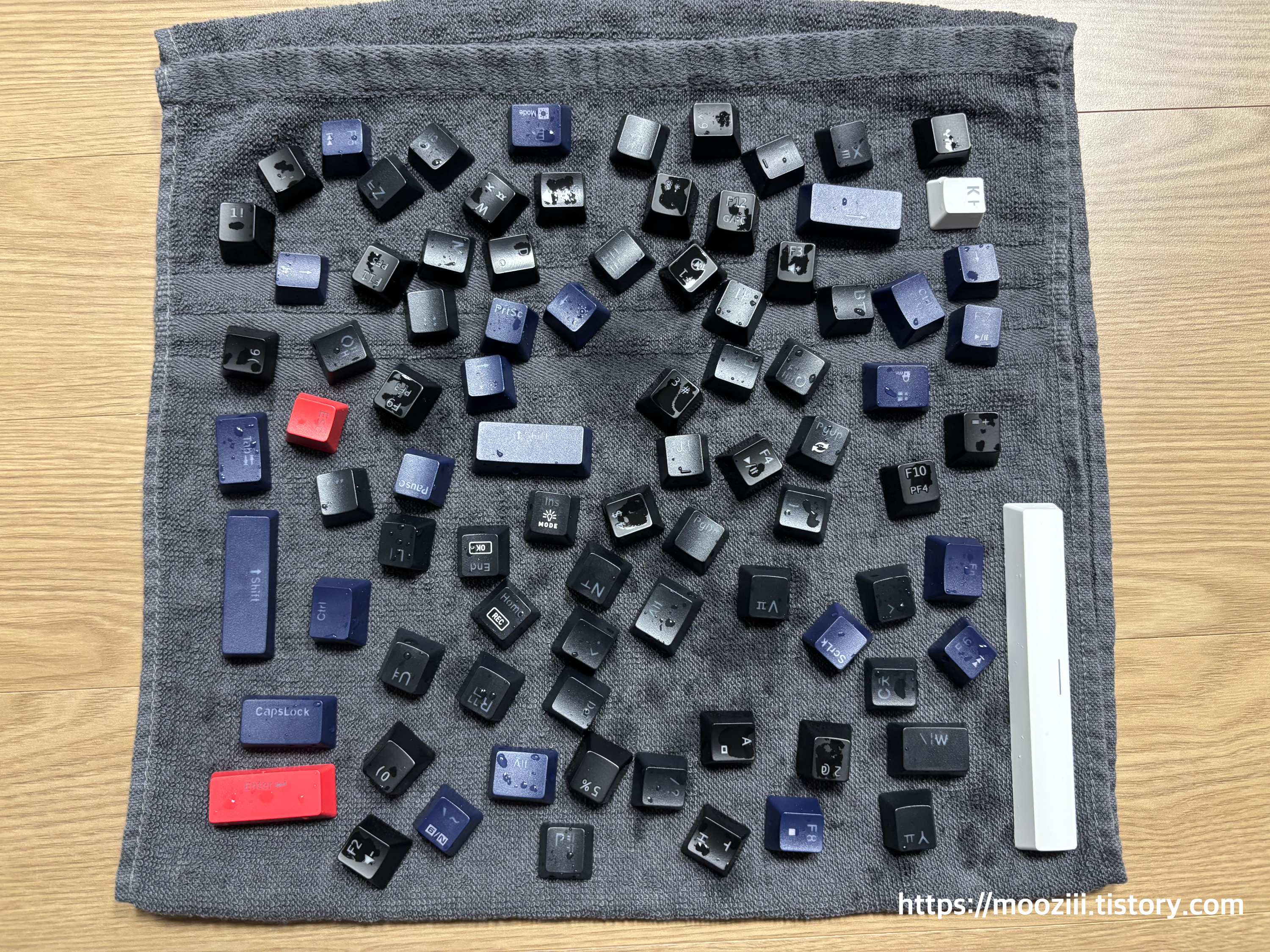 세척이 끝난 키캡은 물기가 남아 있었기 때문에 하루 정도 충분히 건조한 후 조립했습니다.