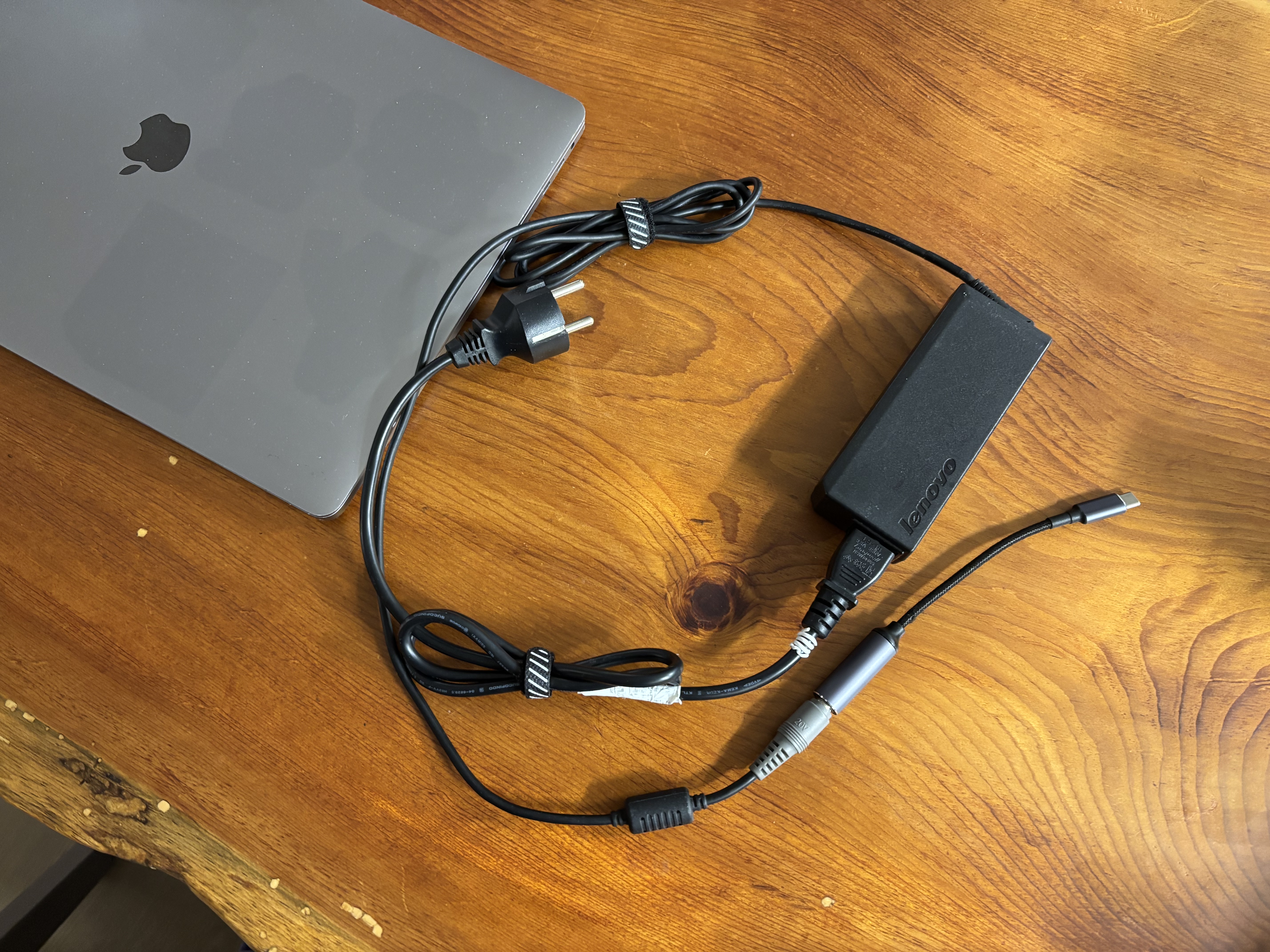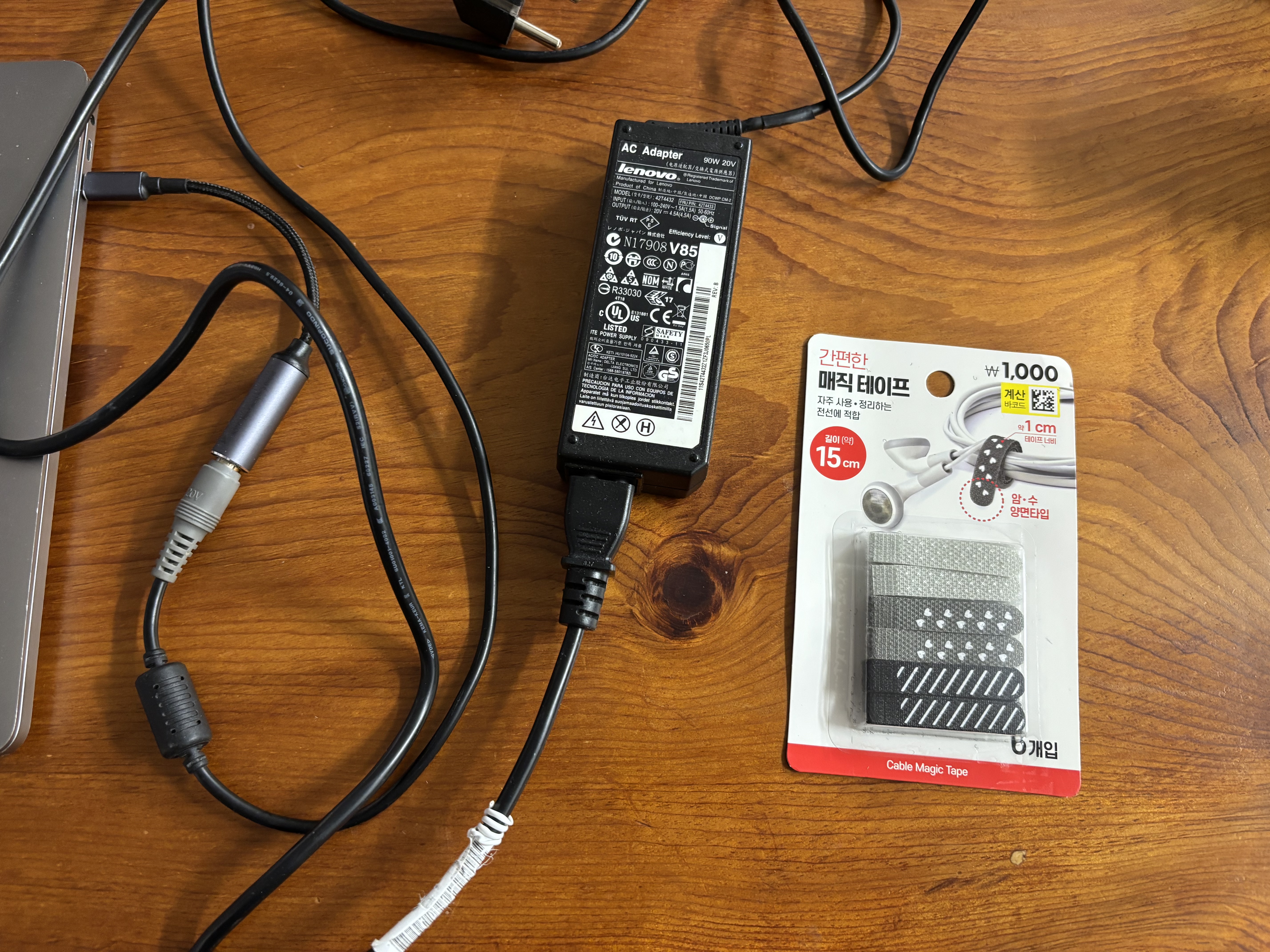 저는 정품 충전기 대신 호환성이 좋은 레노버 어댑터에 C타입 젠더를 연결해서 사용하고 있는데요. 성능은 좋지만, 선이 길고 두꺼워서 가방에서 꺼낼 때마다 엉켜있거나 책상 위가 금방 지저분해지곤 했습니다.