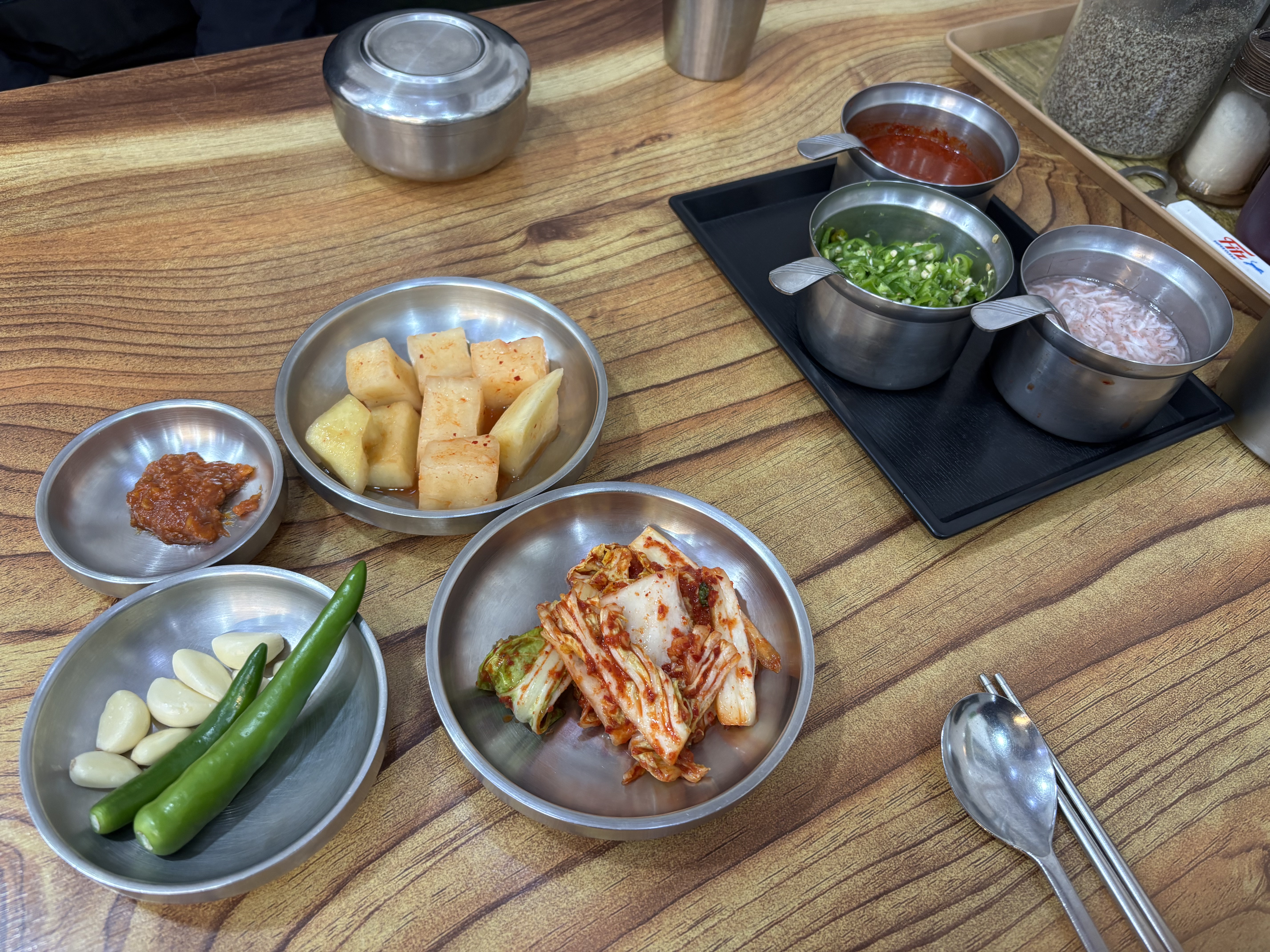 [정갈하게 세팅된 밑반찬과 양념]